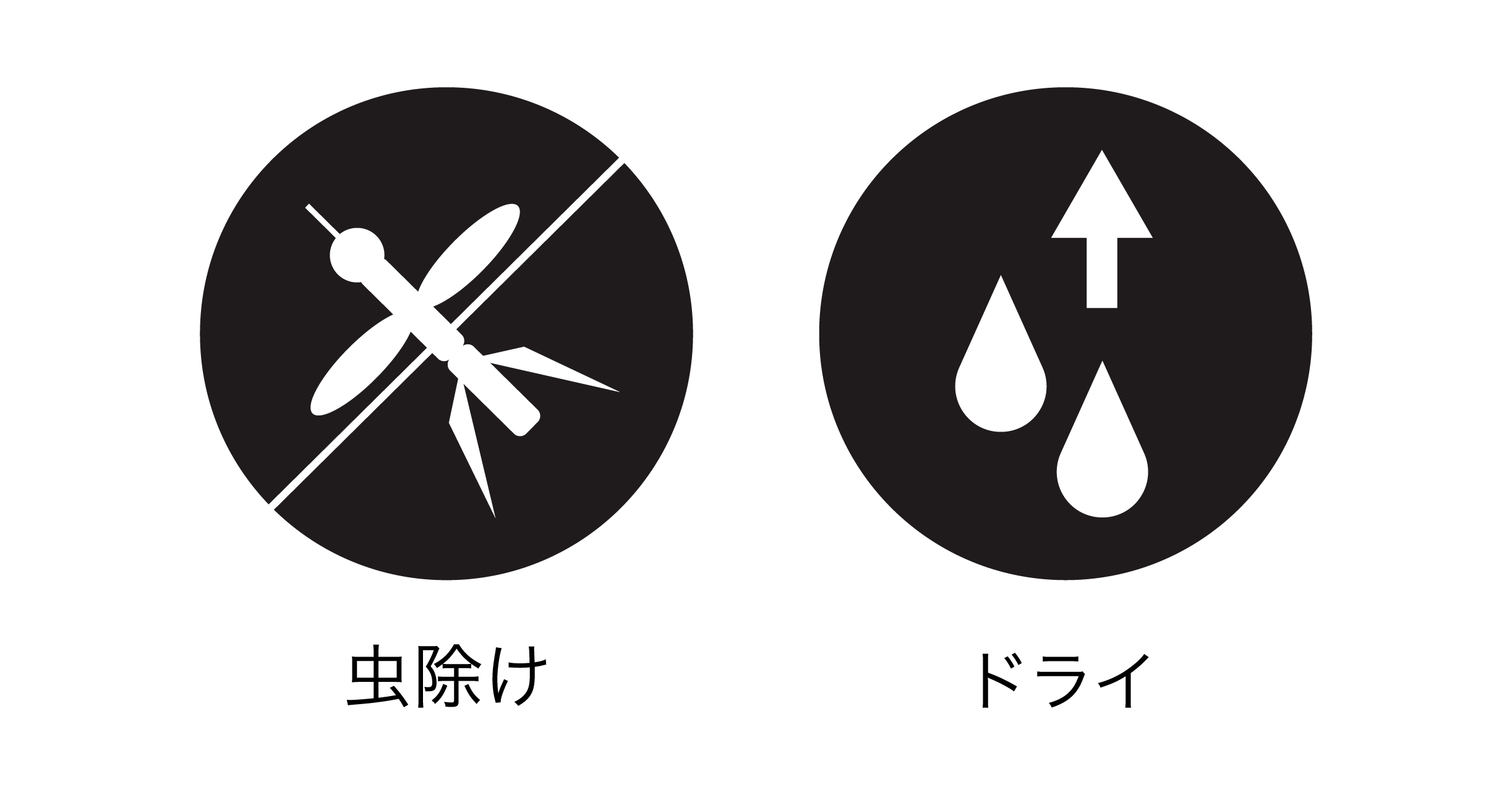 生地自体に虫よけ成分を配合し、身につけるだけで手軽に虫よけ効果を発揮。